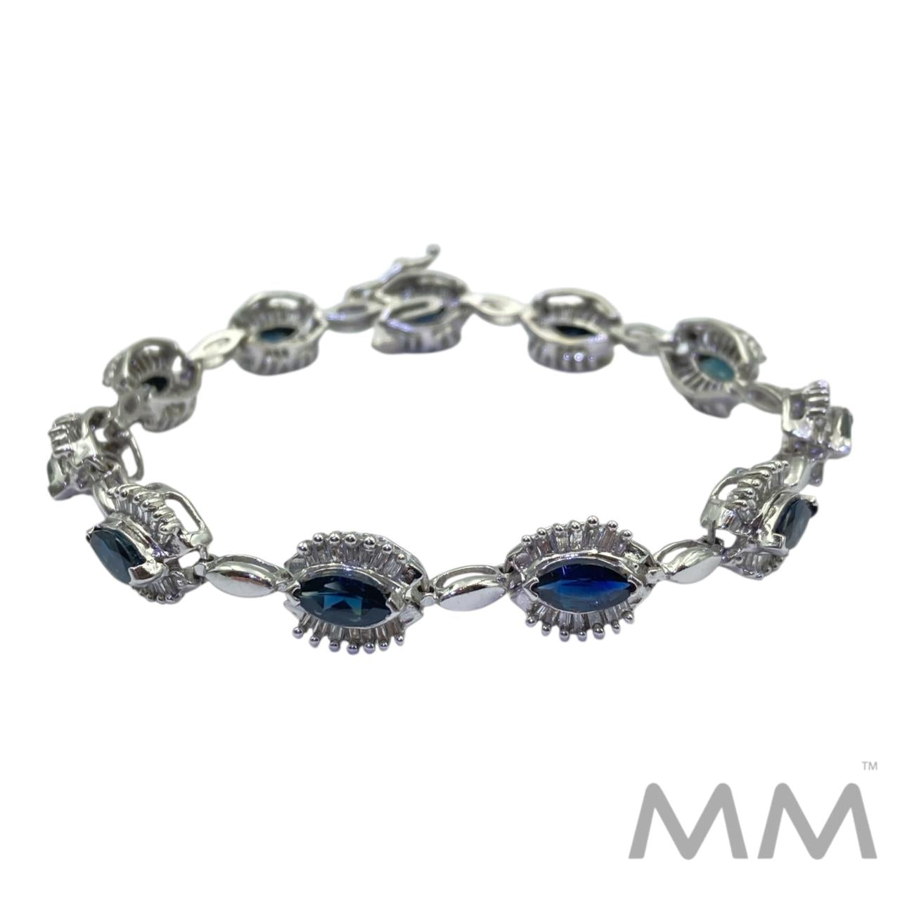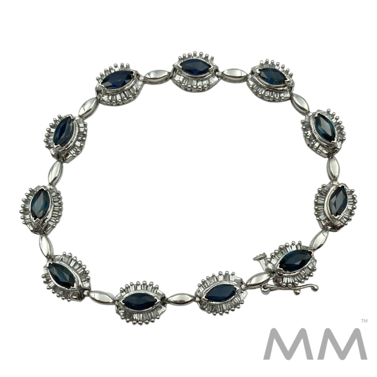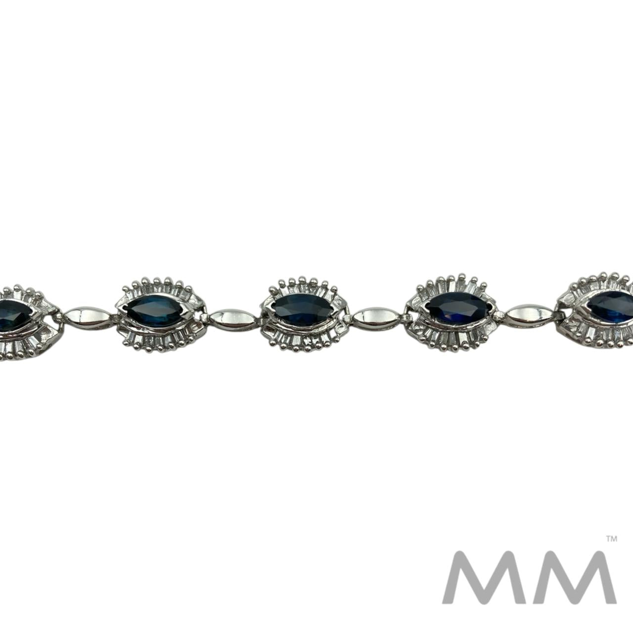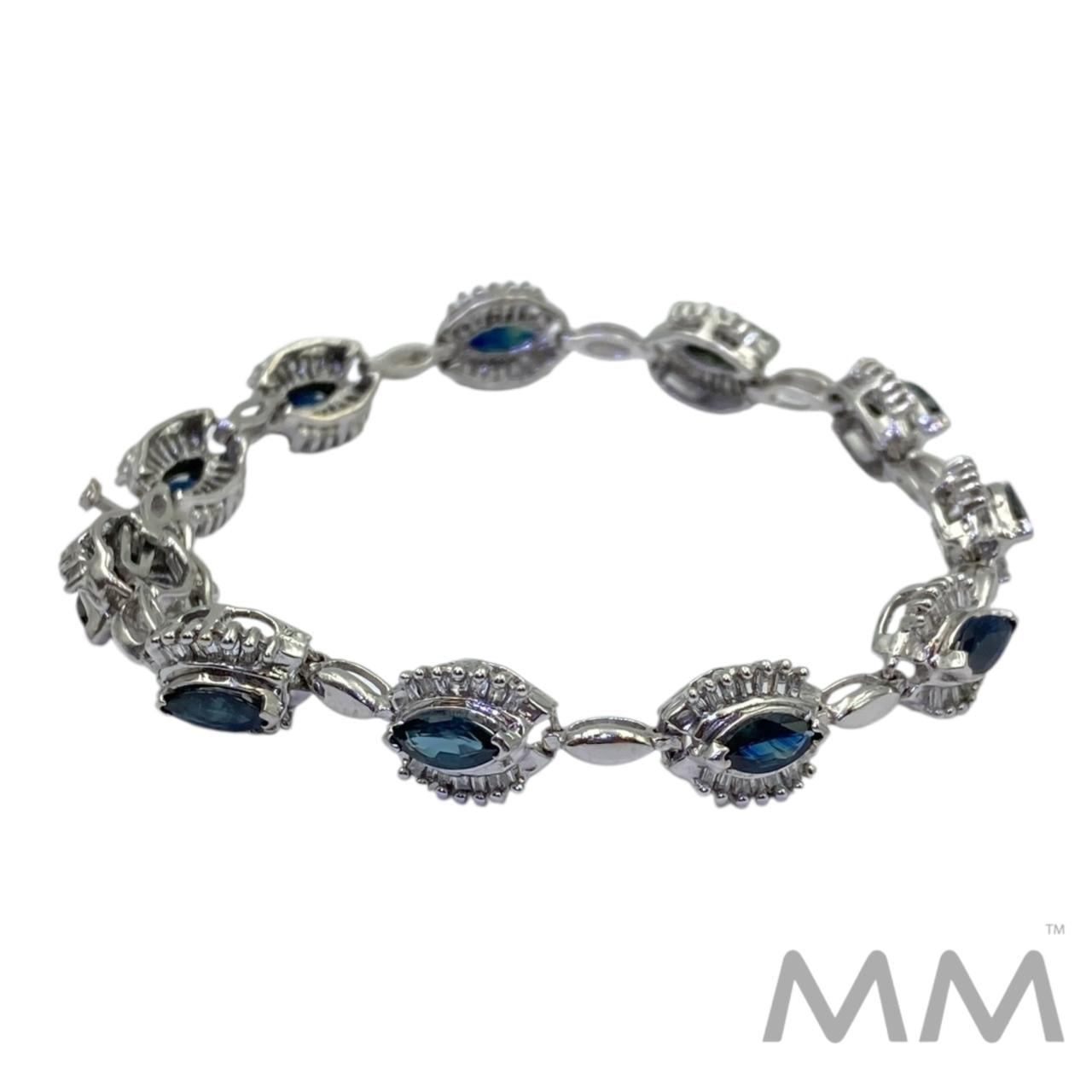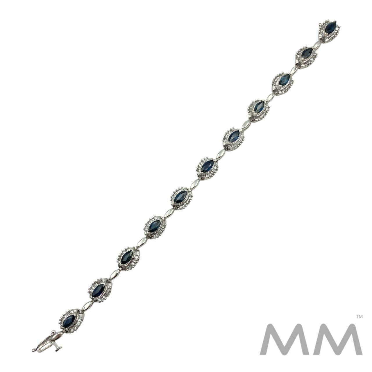 14K White Gold Sapphire & Diamond Bracelet – 6.00ctw Marquise Sapphires, 1.54ctw Baguette Diamonds, 7.25”