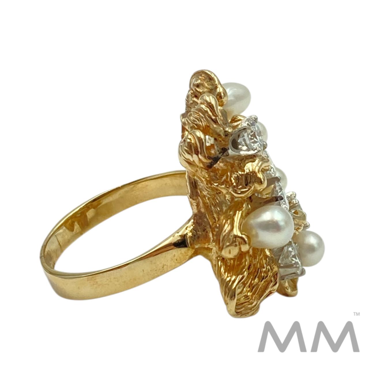 14K Yellow Gold Diamond & Pearl Free-Form Ring Size 9.75