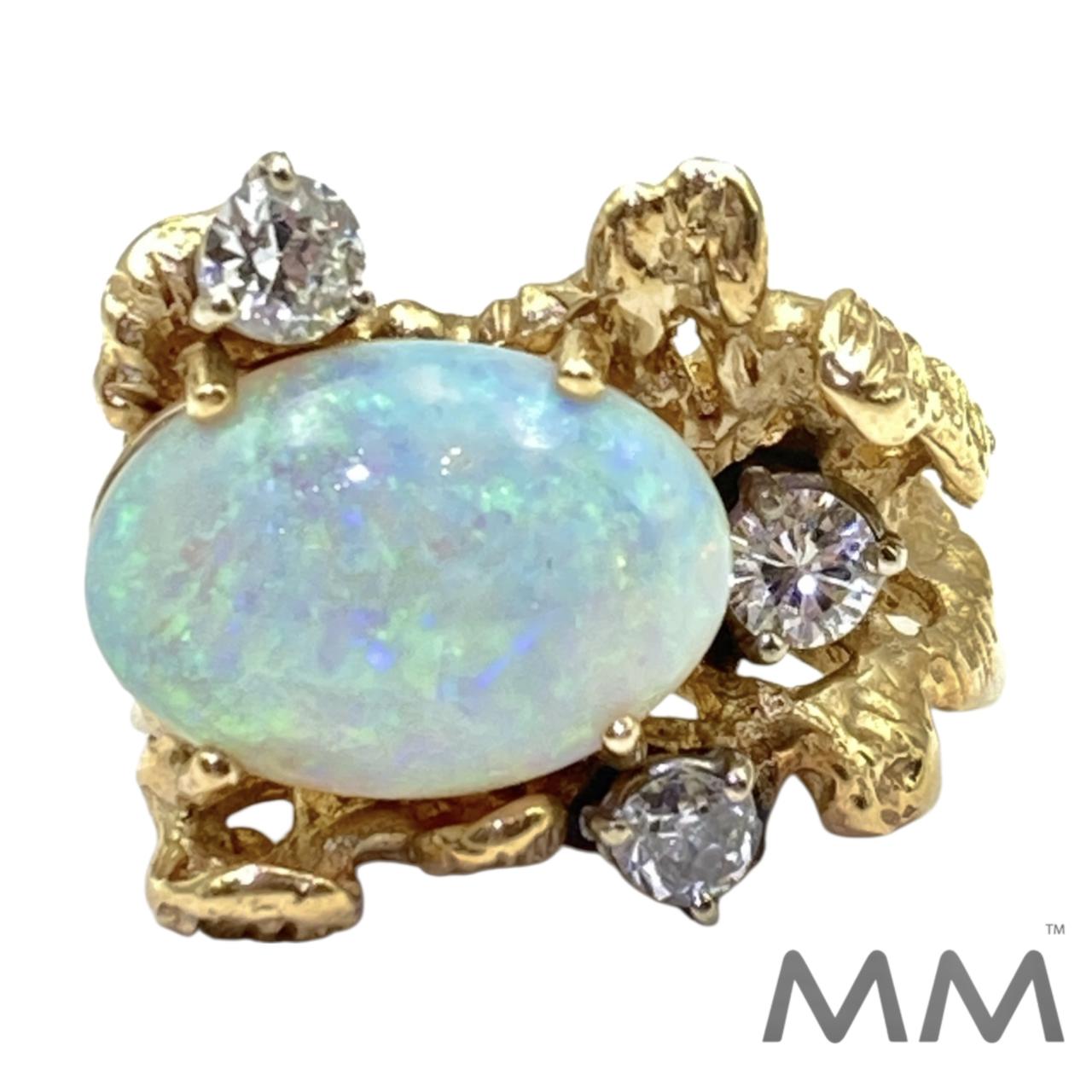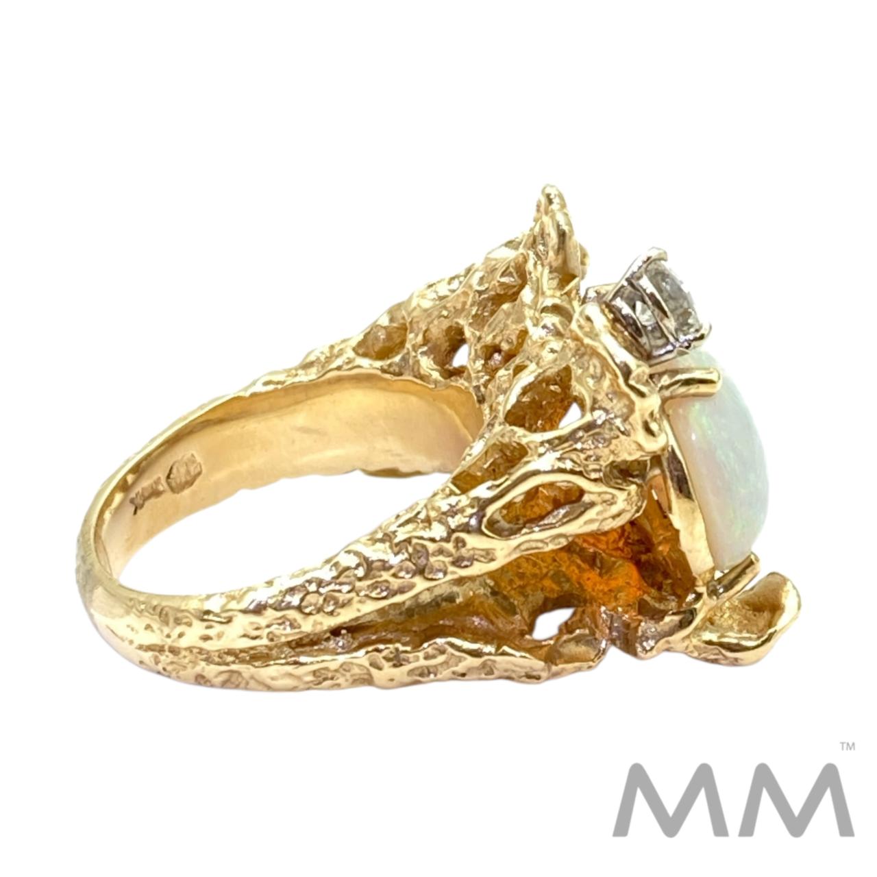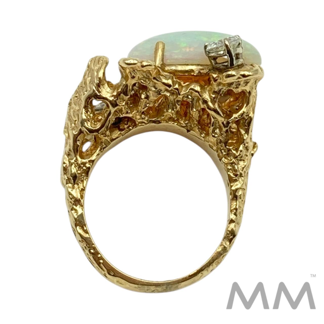 14K Yellow Gold Opal & Diamond Free-form Ring Size 6