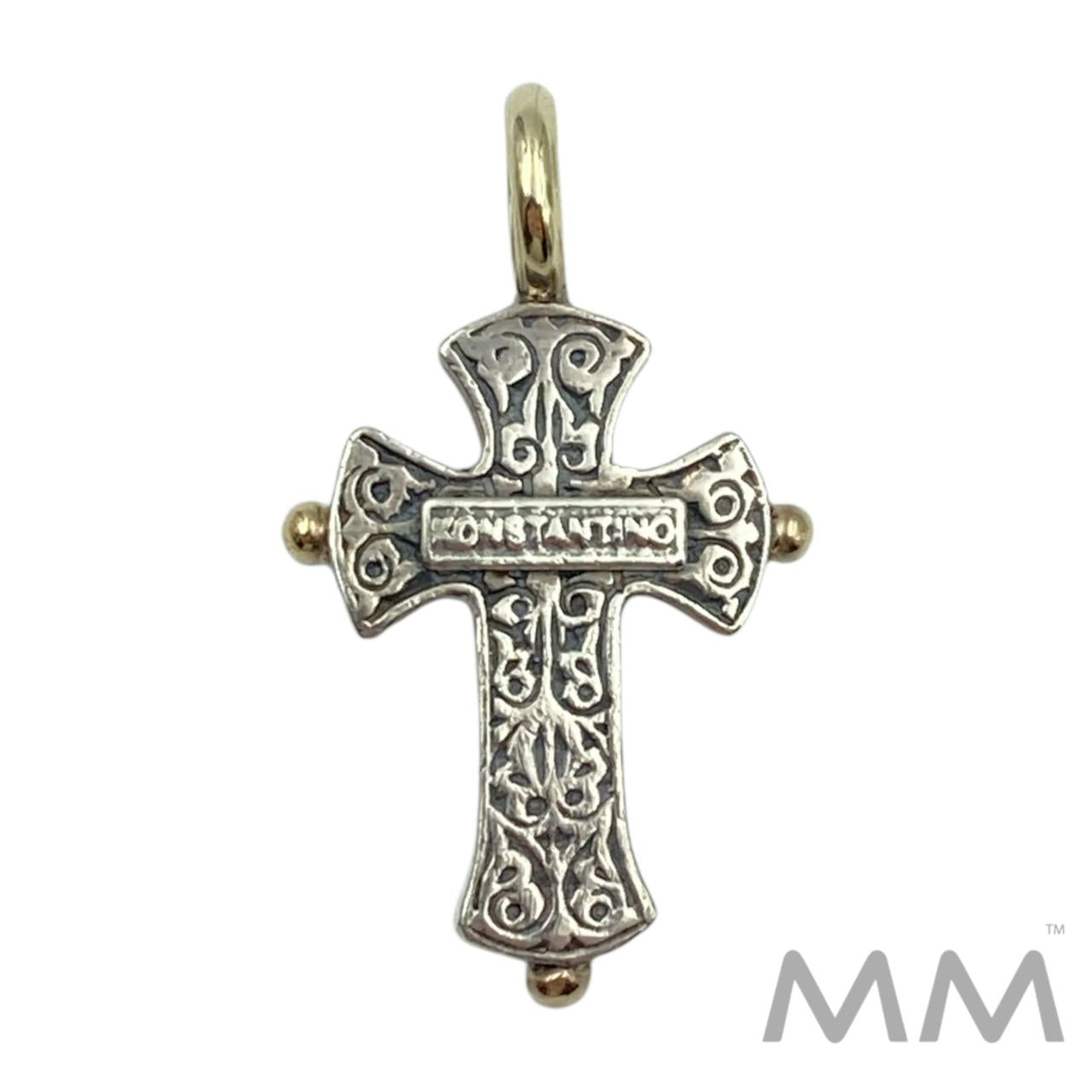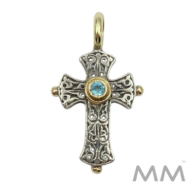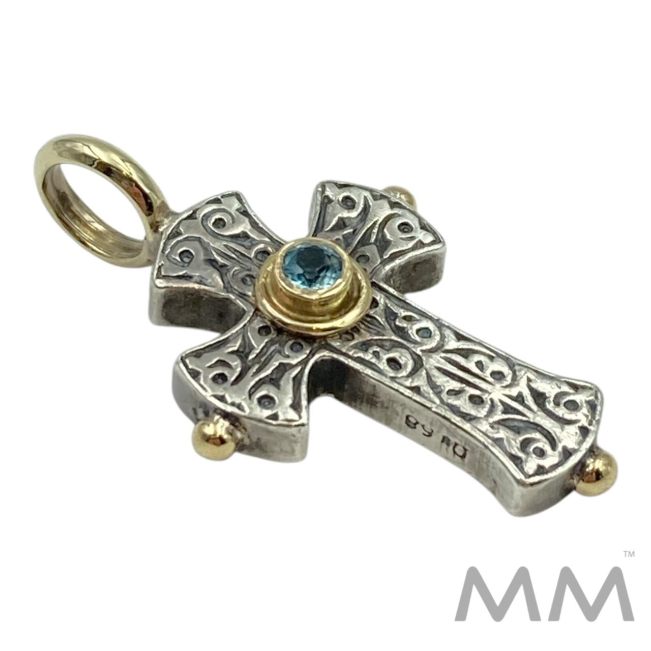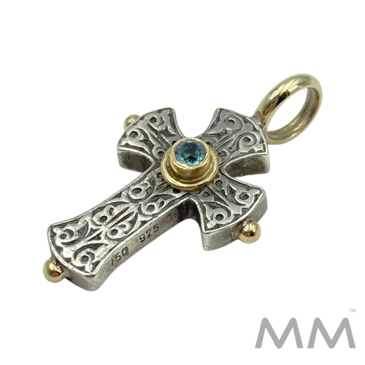 Pre-Owned Konstantino Cross Pendant 18K Yellow Gold & Sterling Silver w/ Topaz Stone