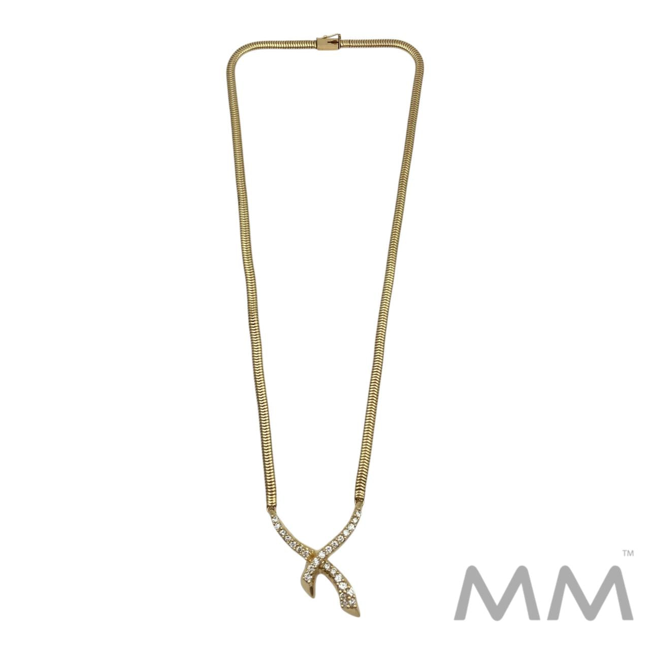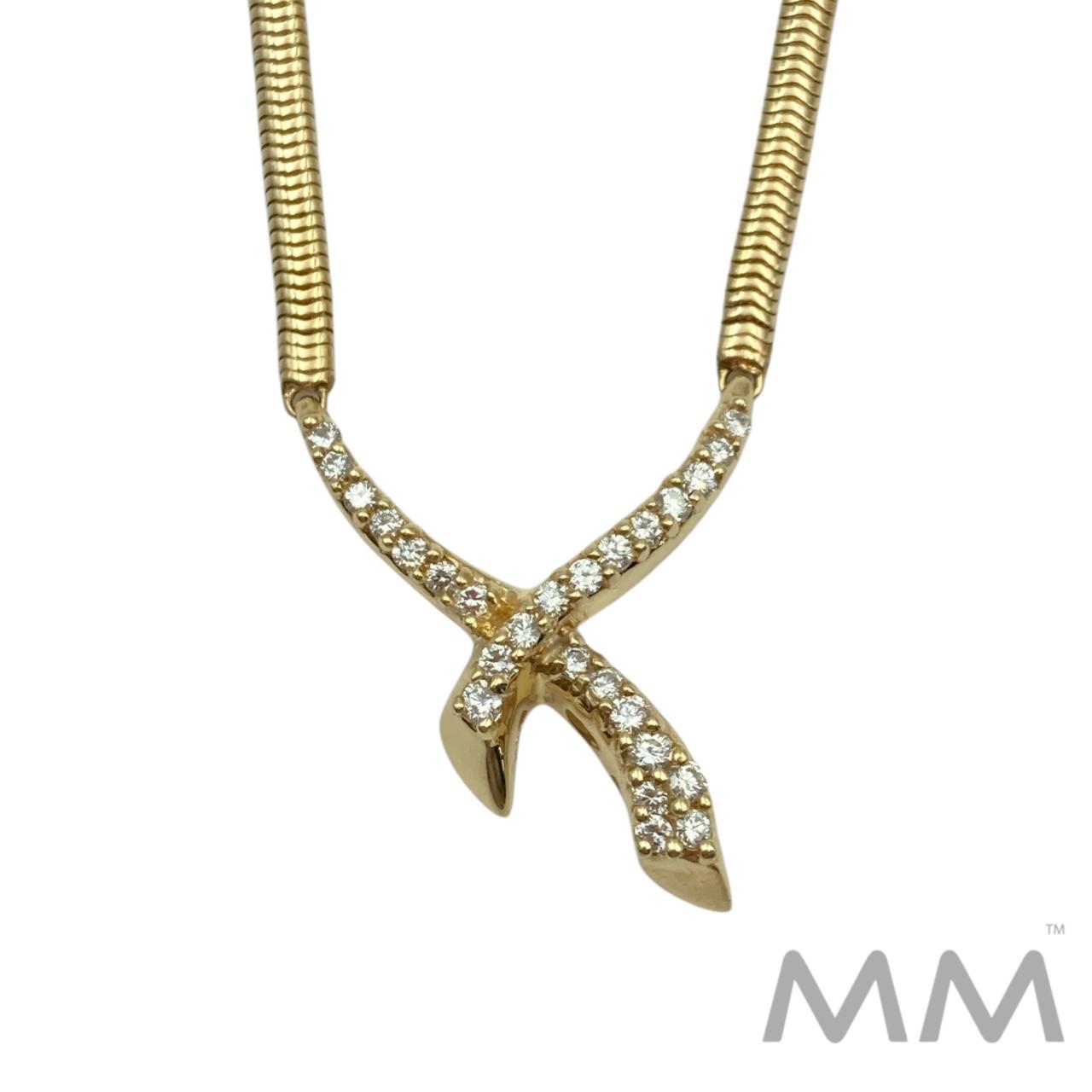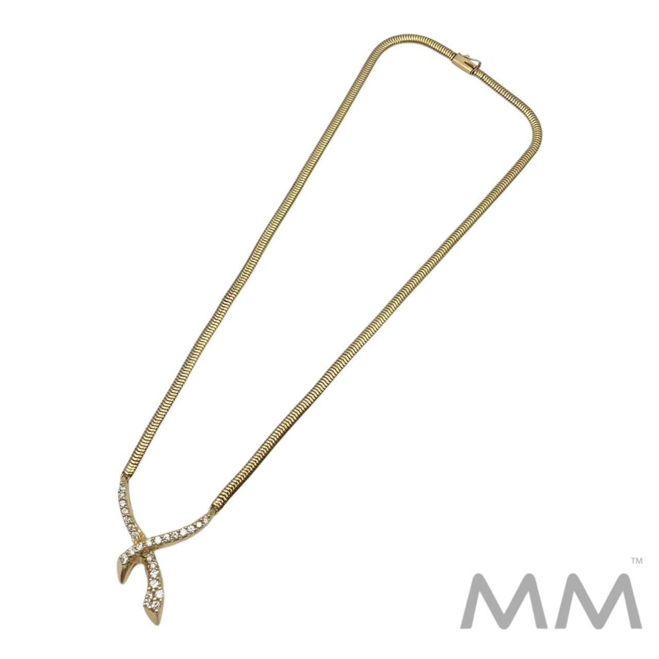 14K Yellow Gold Freeform “X” Diamond Pendant Necklace