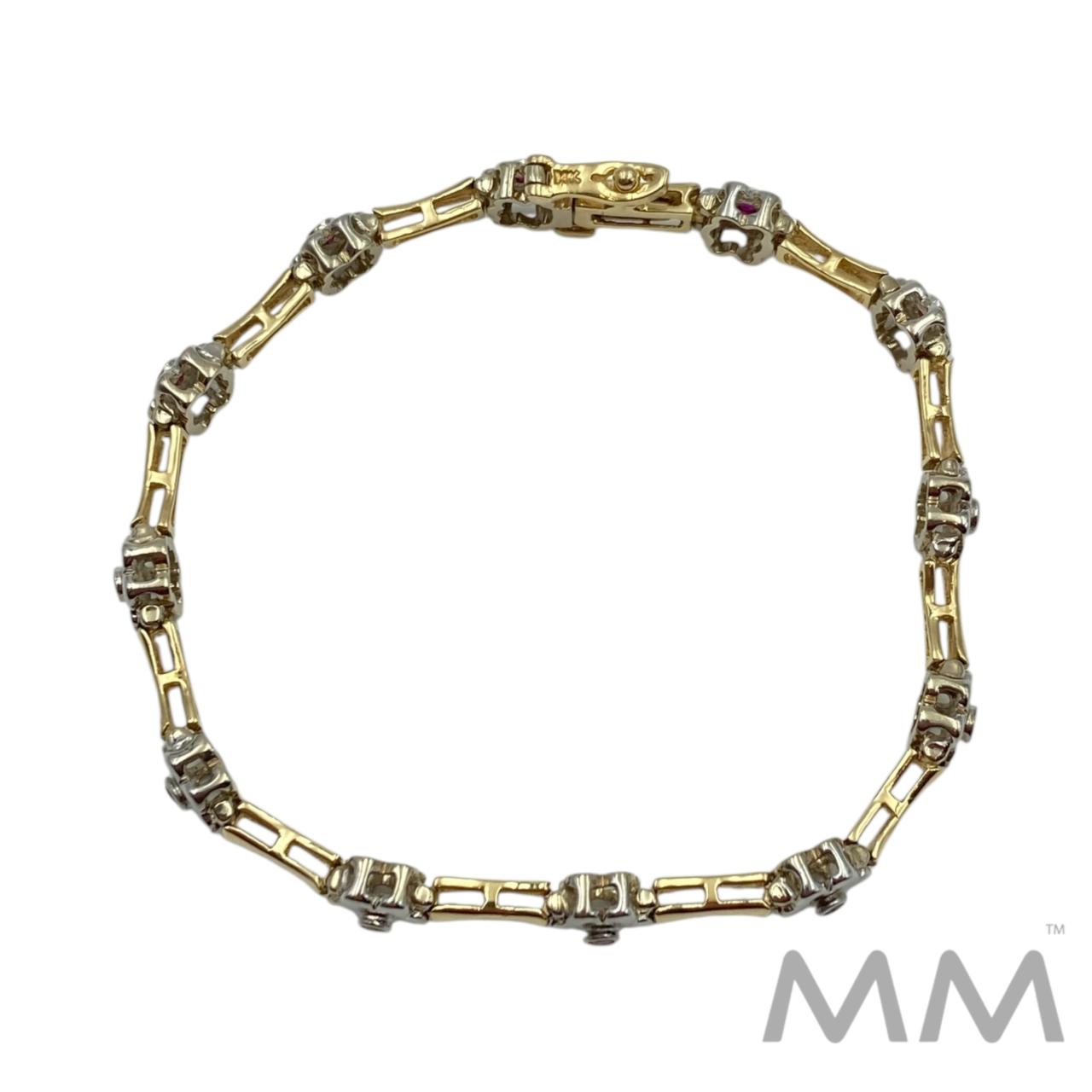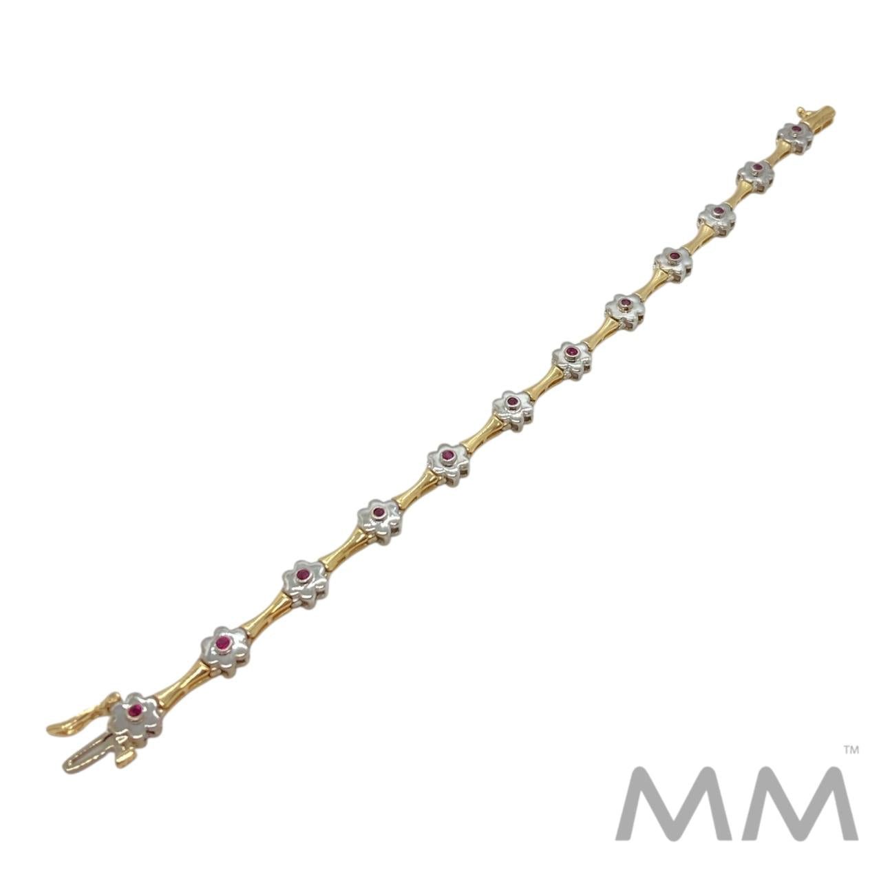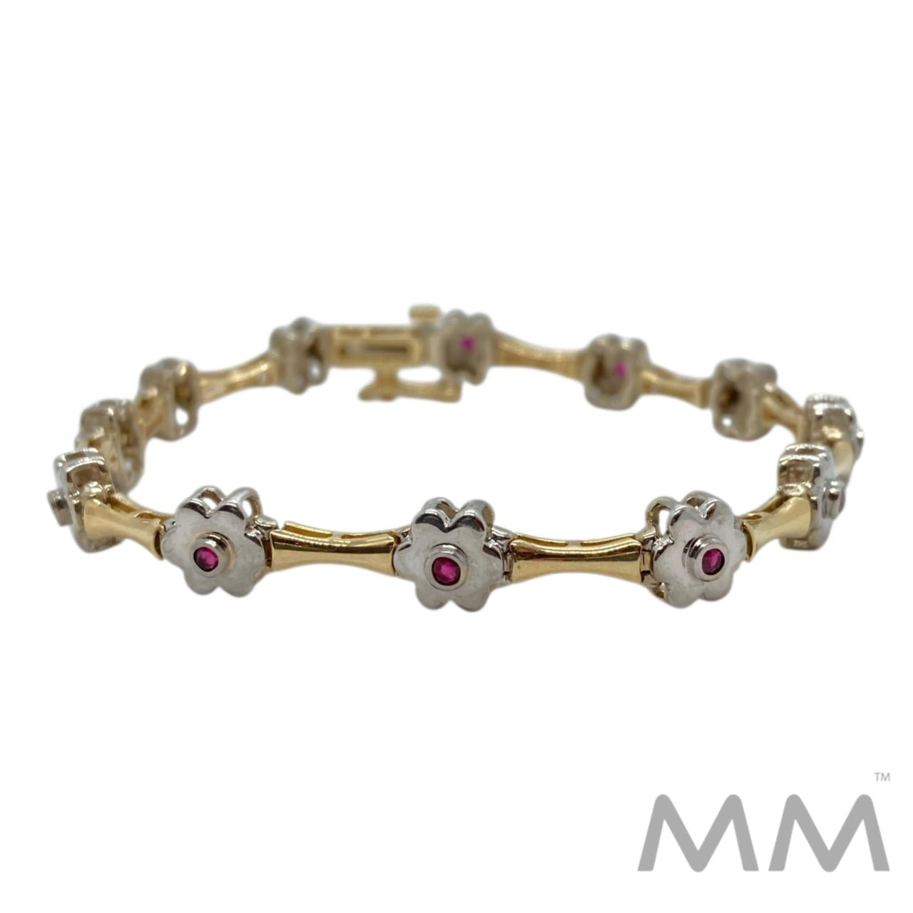 14K Yellow & White Gold Ruby Flower Link Bracelet – .21ctw. Round Rubies