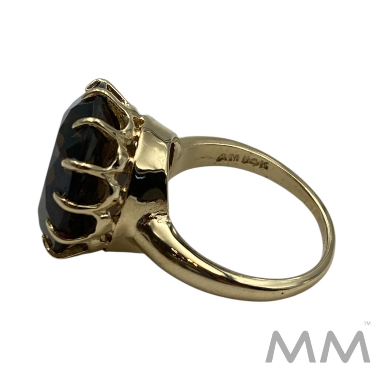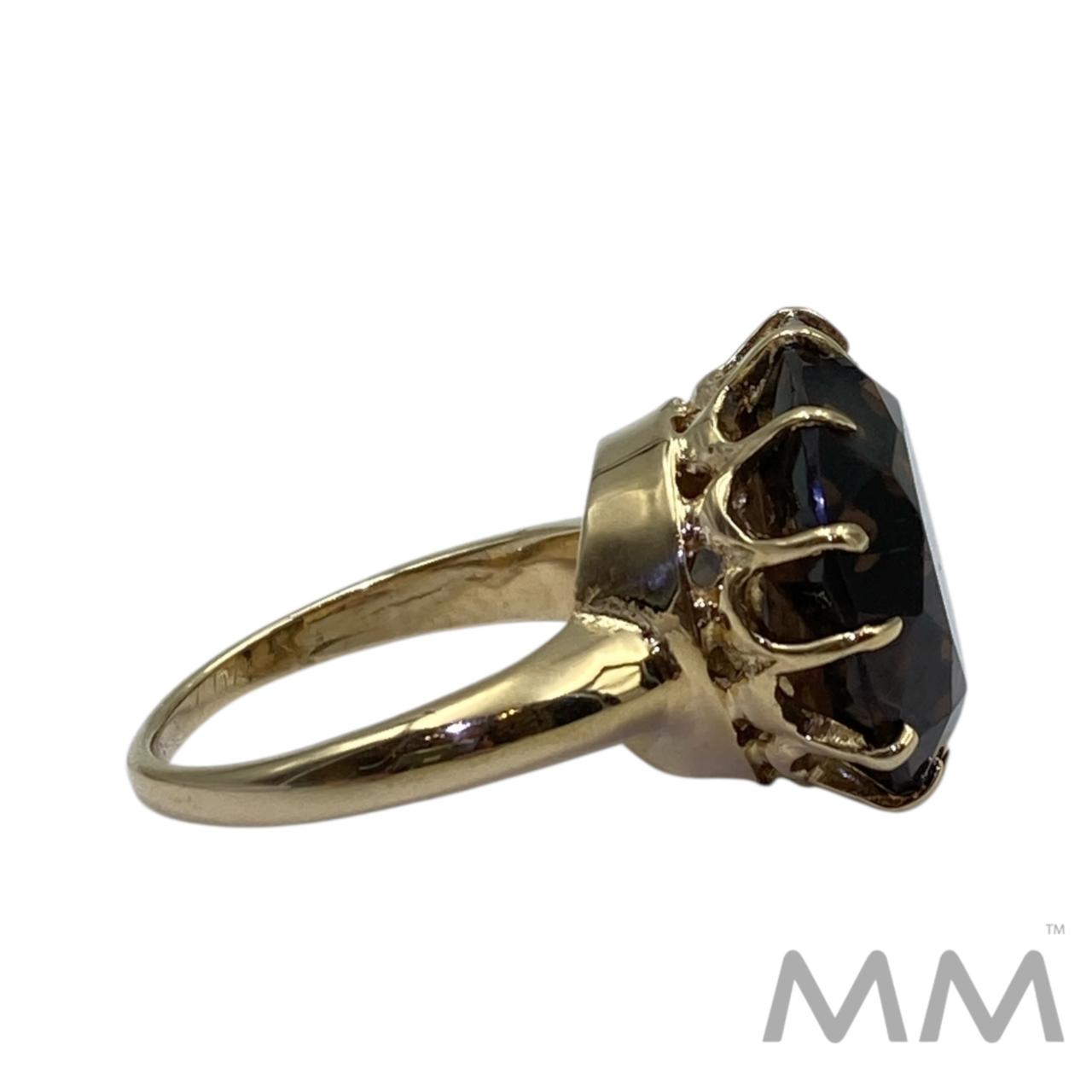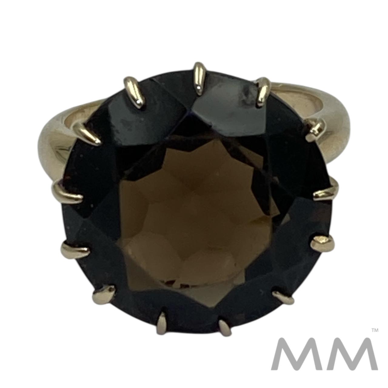 14K Yellow Gold Ring with 8.90ct Round Smoky Quartz Size 5