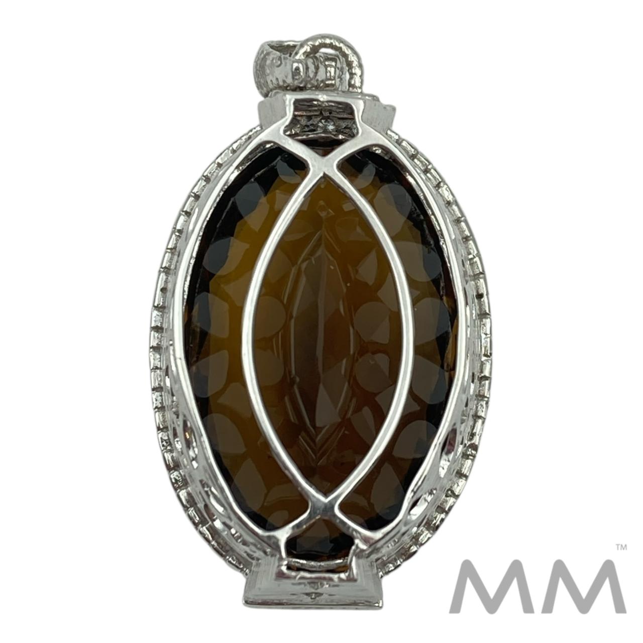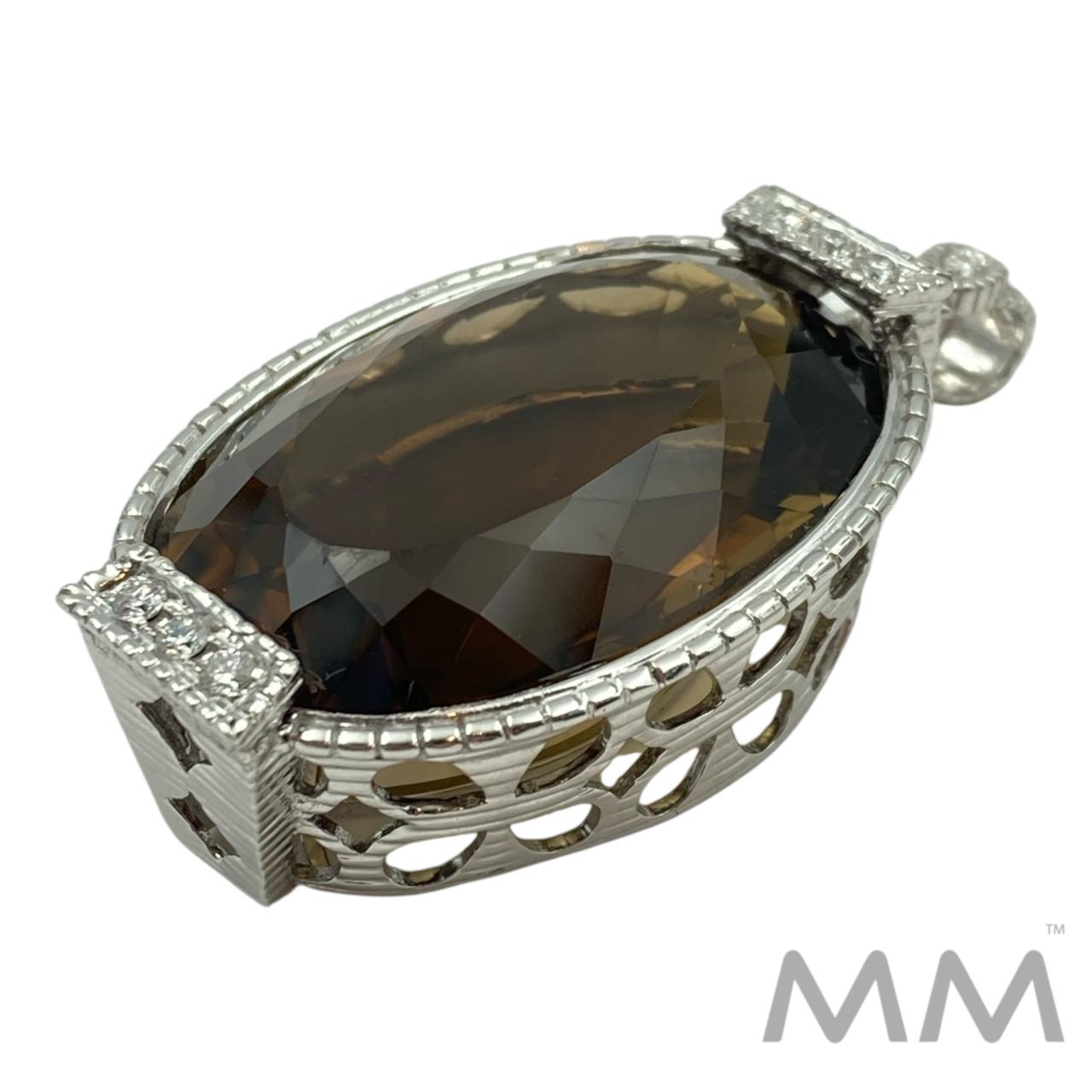 18K White Gold Smoky Quartz & Diamond Pendant 44.79ct Elegant Bezel Set Design