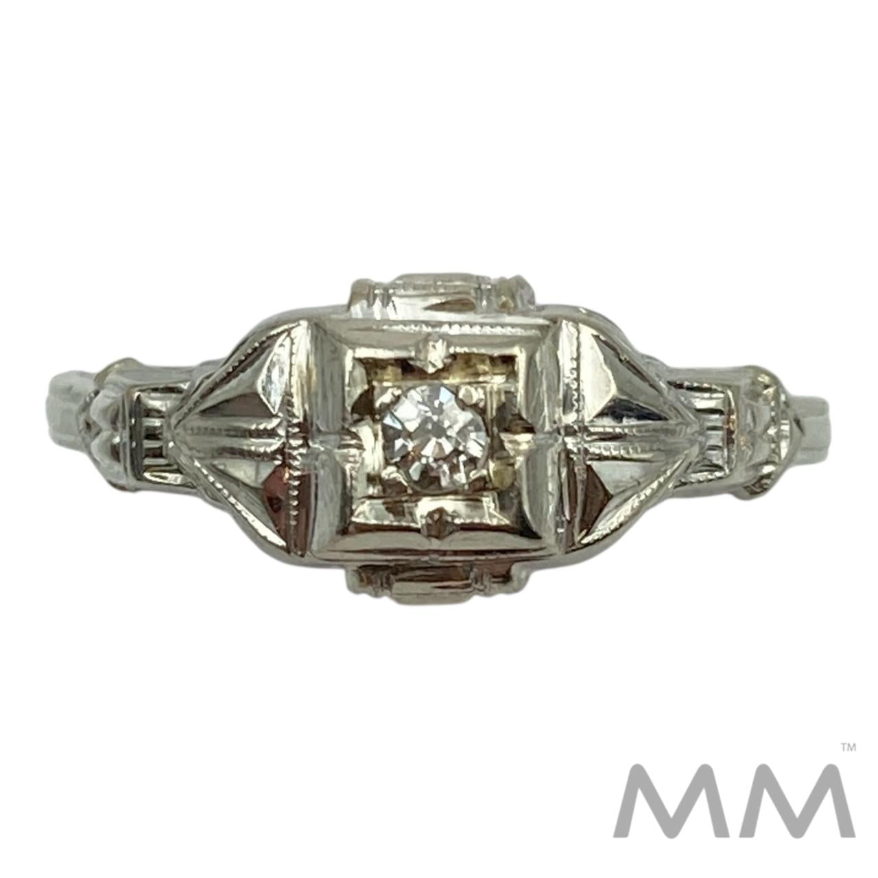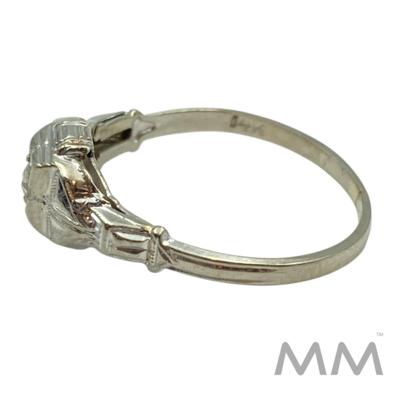 Description: This elegant ring is crafted in 14K white gold and features a sparkling round diamond totaling .04 carats, graded SI clarity with a bright G-H color. Lightweight and refined at 1.3 grams, this size 6 ring offers a timeless, understated look perfect for everyday wear or stacking.