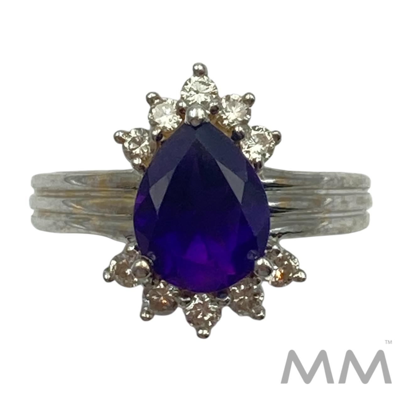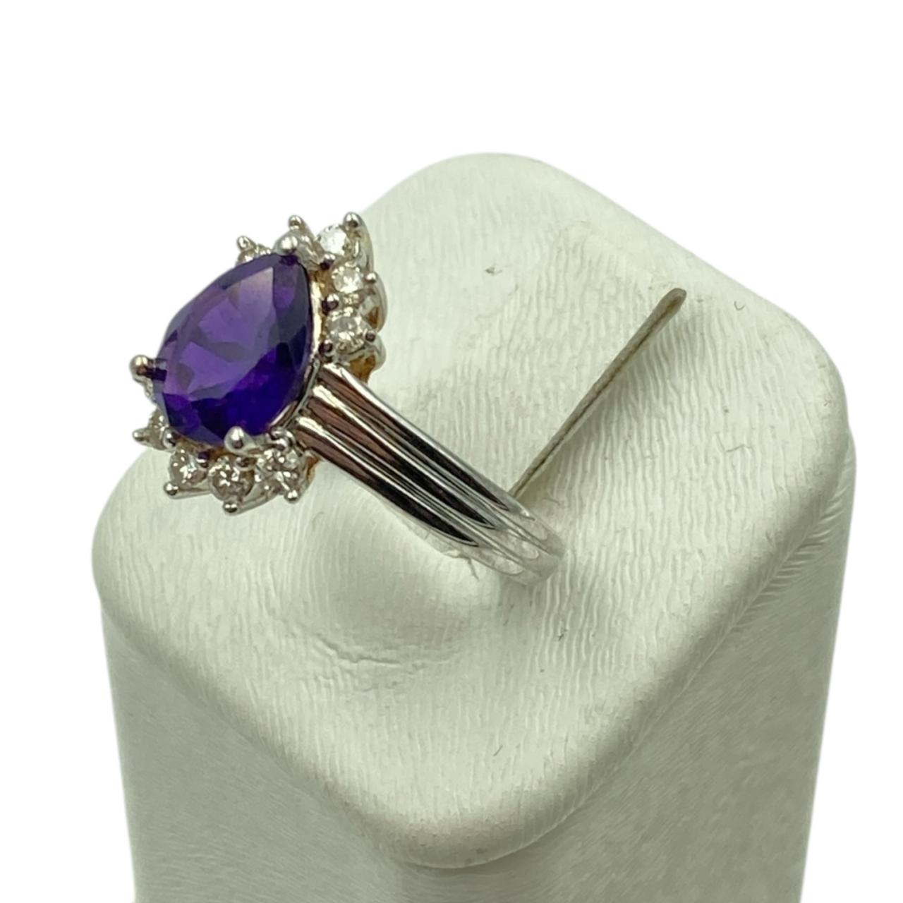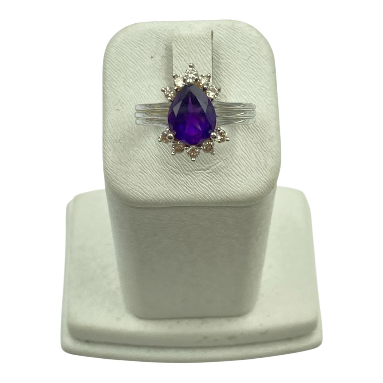 14K White Gold Pear Amethyst & Diamond Ring 1.70ct Center Size 6