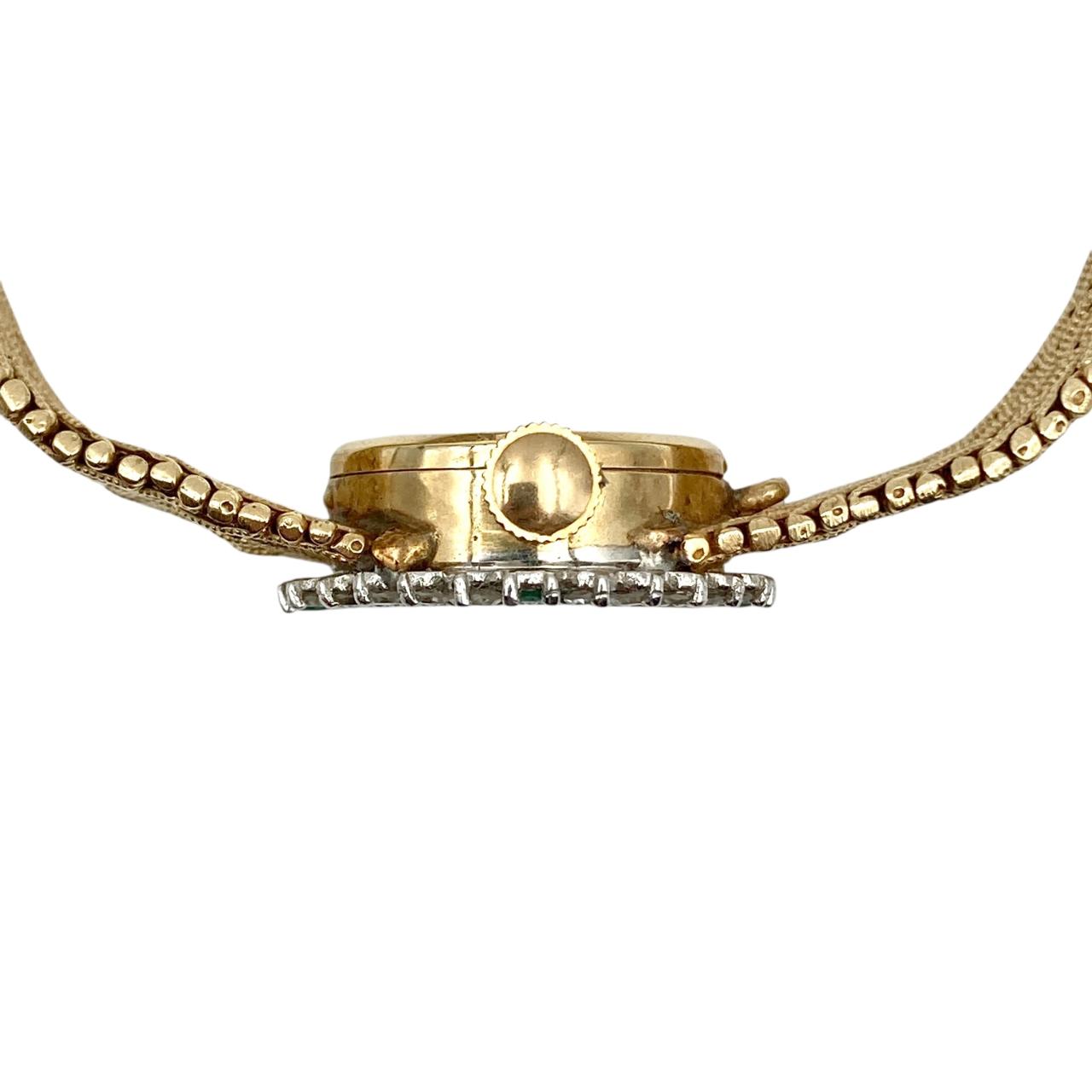 14K Yellow Gold Diamond & Emerald Cocktail Wristwatch | Vintage Semag Manual Wind
