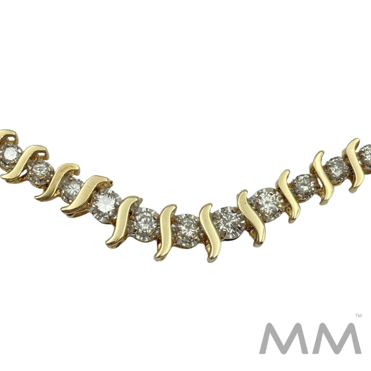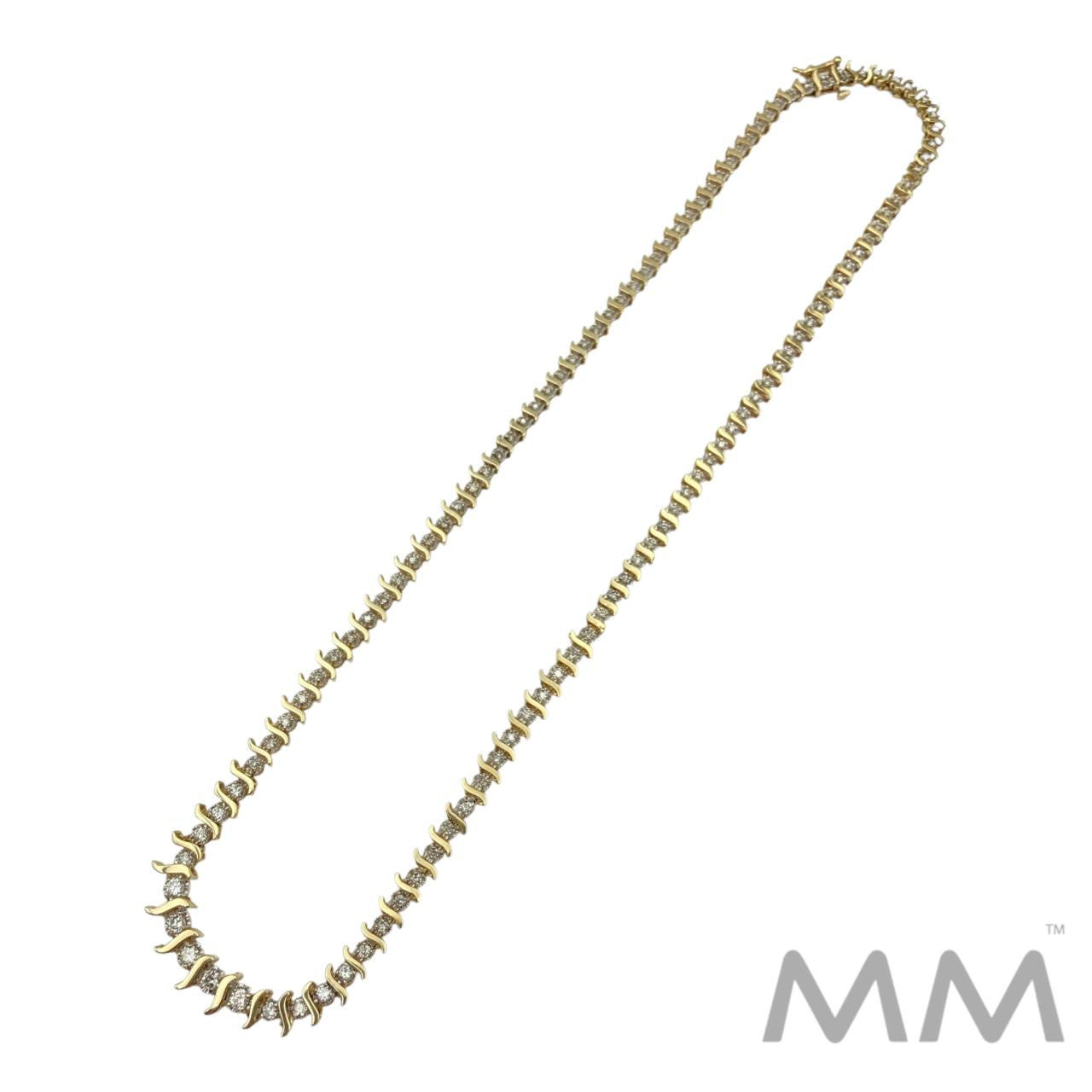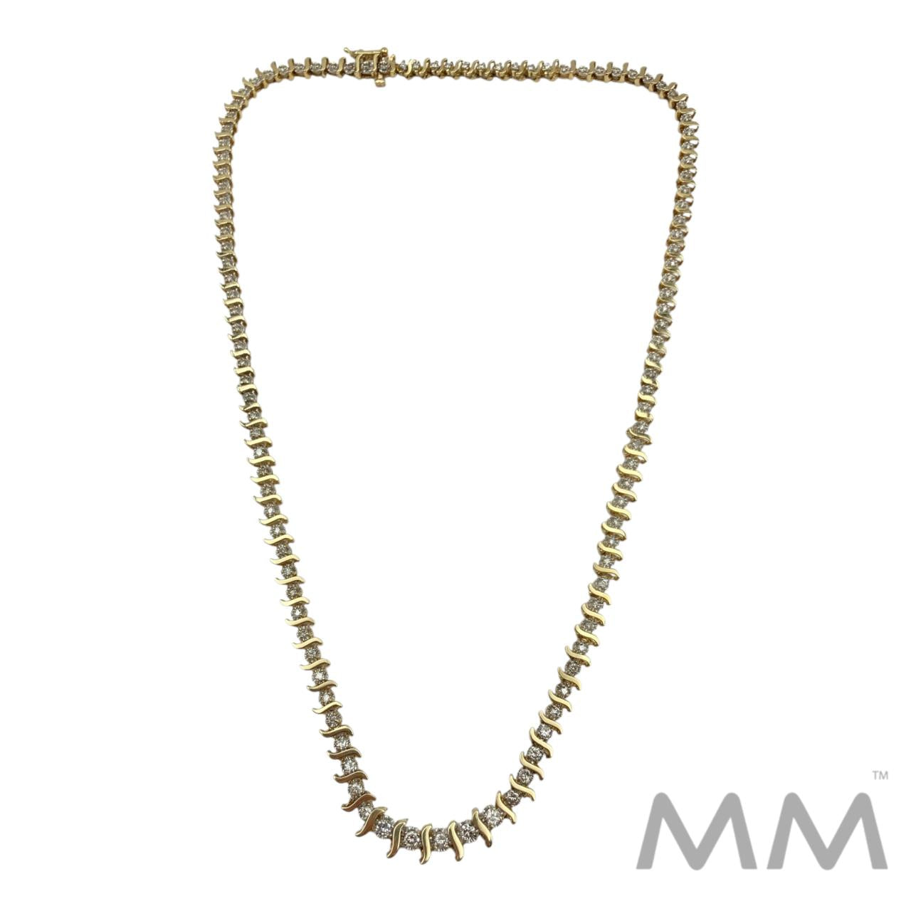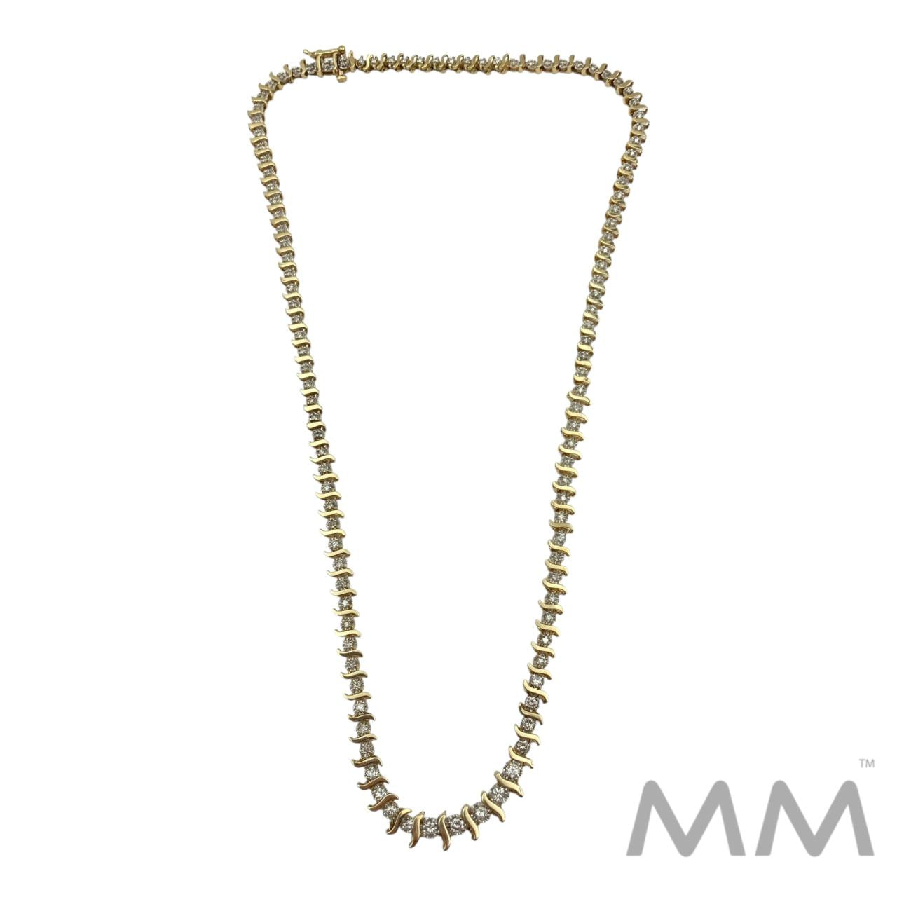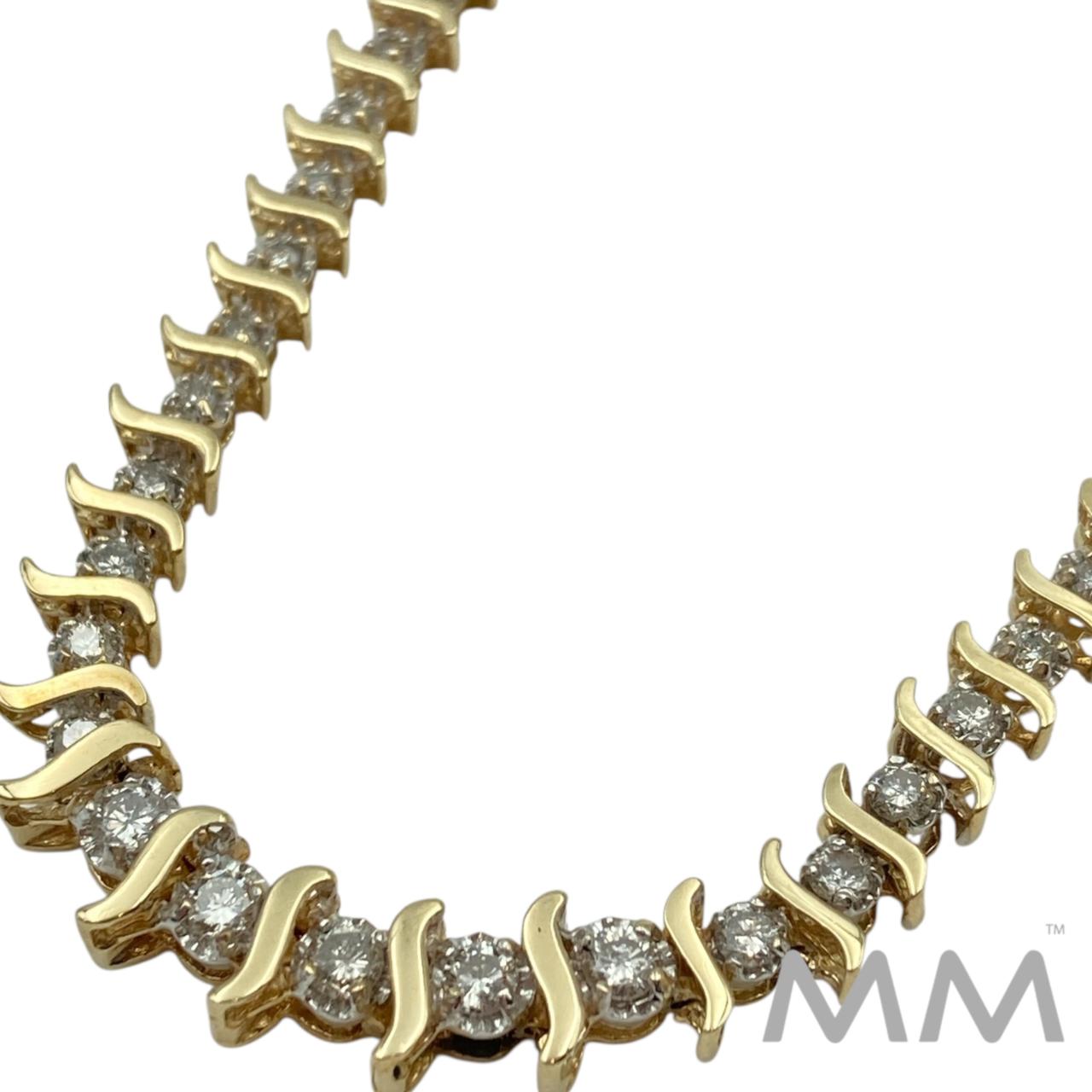 14K Yellow Gold Diamond Graduating “S” Style Tennis Necklace 1.59ctw 16”