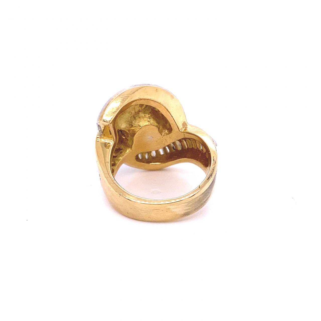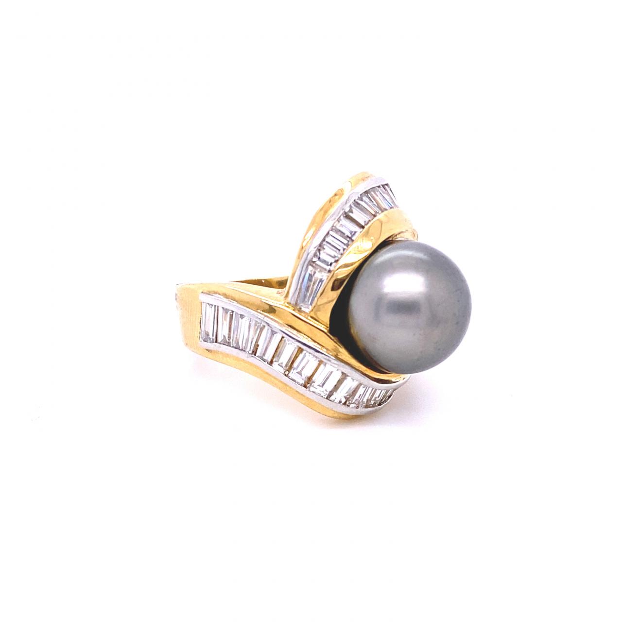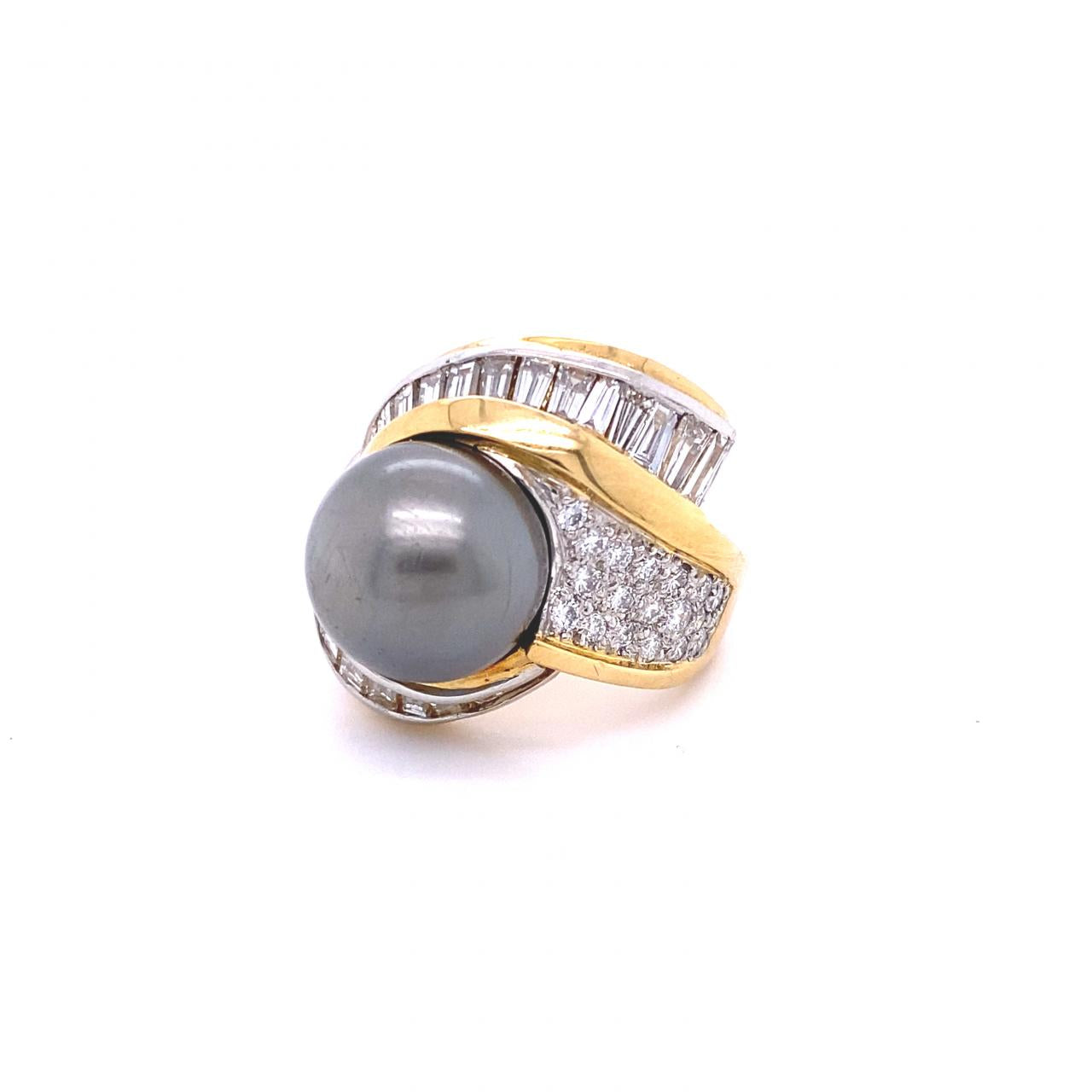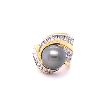 12.90mm Round Cultured Tahitian Pearl and Diamond Ring 18K Yellow Gold and Platinum